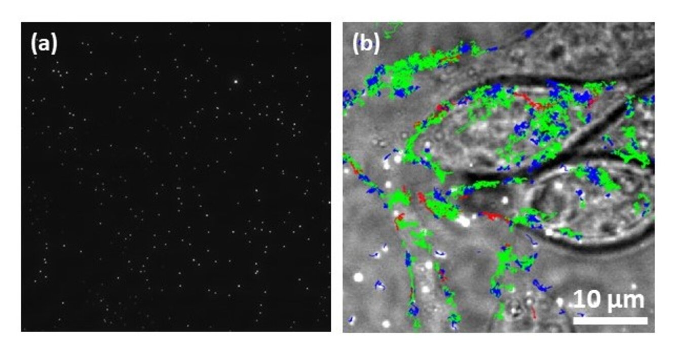Nous avons acquis une forte expertise dans les approches quantitatives de microscopie : les F-Techniques (FLIM/FC(C)S)1 et les caractérisations à l’échelle de la molécule unique (smFRET (single molecule FRET), SPT (single particle tracking), SMLM (Single Molecule Localization Microscopy)2 pour l’étude des dynamiques et interactions biomoléculaires (protéine-protéine, acide nucléique/protéine, lipide/protéine). Après les phases de prototypage et validation des nouveaux instruments, ces derniers sont progressivement intégrés à la plateforme QuESt-IBiSA pour les rendre accessibles à la communauté scientifique académique et industrielle. Nous avons ainsi déjà développé un microscope multiphoton FLIM (fluorescence lifetime microscopy)/FCCS (fluorescence cross correlation spectroscopy),3,4 2 microscopes de super-résolution (3D PALM/dSTORM et un système de λ-PAINT),5,6 un microscope champ large et un microscope confocal dédié à la conversion ascendante de photons respectivement optimisé pour le SPT cellulaire et imagerie PLIM (phosphorescence lifetime imaging).7,8